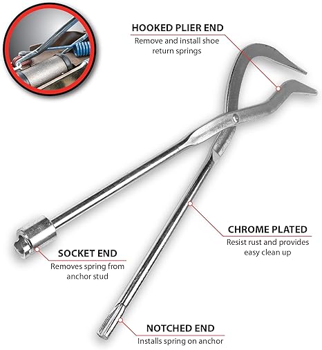 - Use to remove and install shoe return springs on most drum brakes.